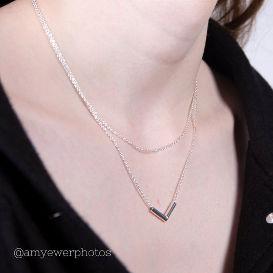 Prix habituelCollier en argent sterling à double couche avec barre en V de 40 cm