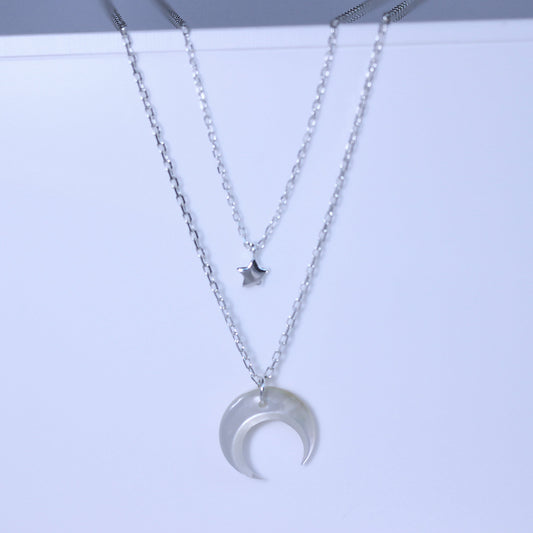 Collier double couche en argent sterling avec étoile et croissant de lune