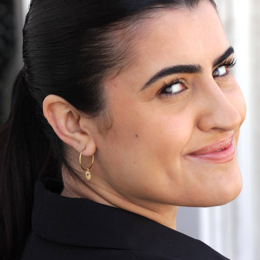 Prix habituelBoucles d'oreilles créoles en argent sterling plaqué or avec breloque marquise en oxyde de zirconium