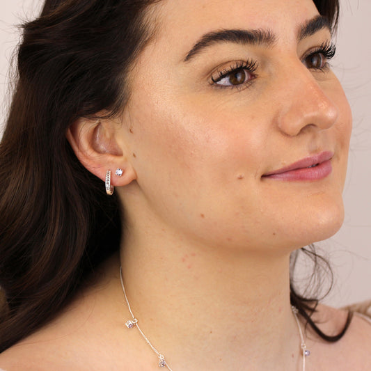 Prix habituelBoucles d'oreilles à tige en argent sterling avec double zircone cubique