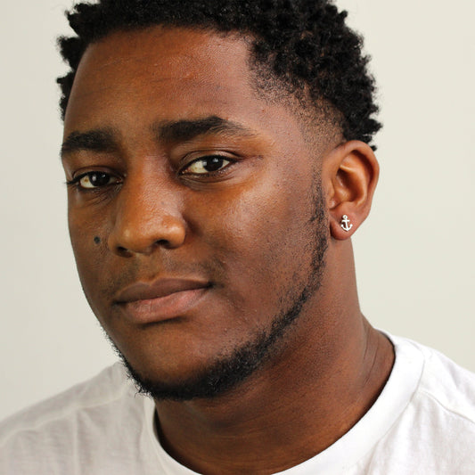 Prix habituelBoucle d'oreille à tige en argent sterling pour homme, motif ancre simple