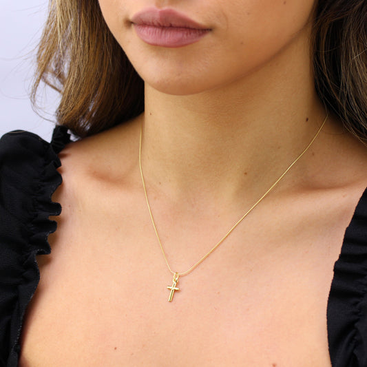 Petit collier croix en argent sterling plaqué or de 35 à 71 cm