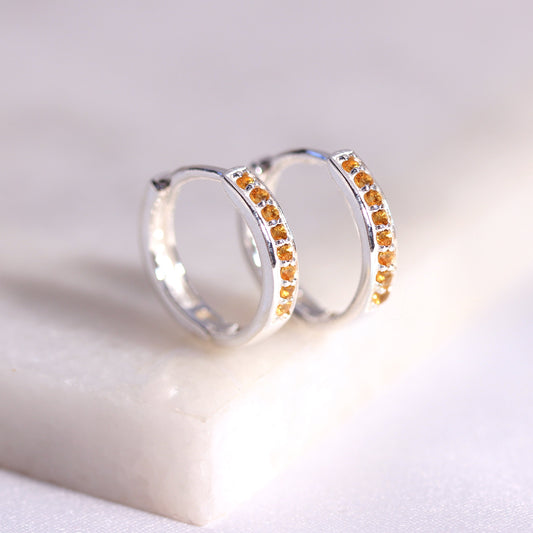 Prix habituelBoucles d'oreilles créoles en argent sterling avec citrine et zircone cubique pavées de 15 mm