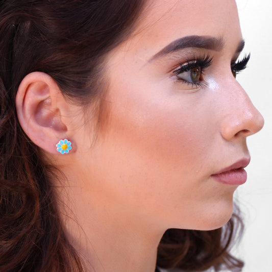 Prix habituelBoucles d'oreilles à tige en argent sterling et émail bleu et jaune en forme de marguerite