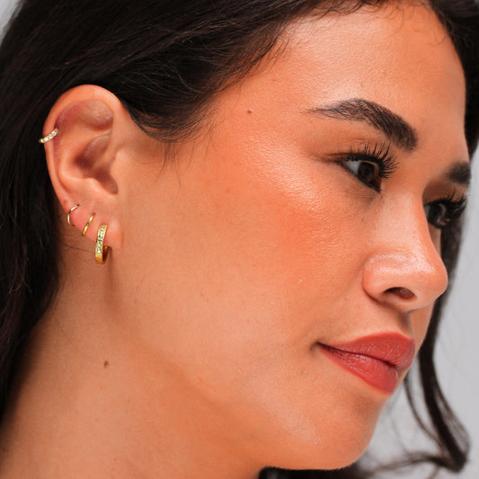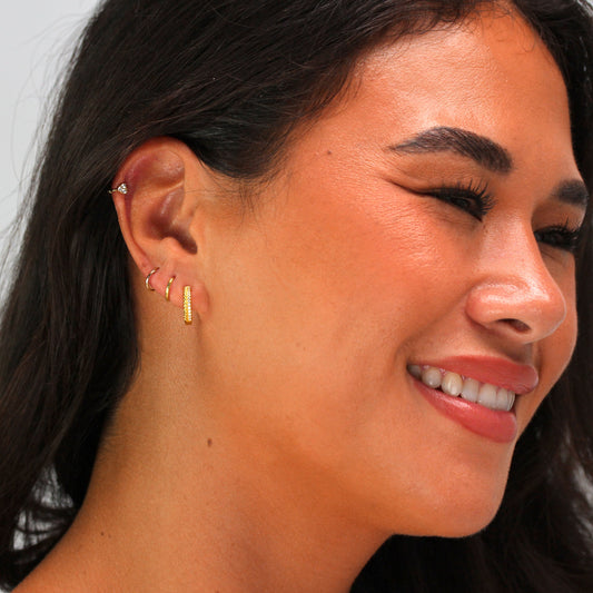 Prix habituelBoucles d'oreilles créoles en argent sterling plaqué or avec double tour pavé de zircones cubiques