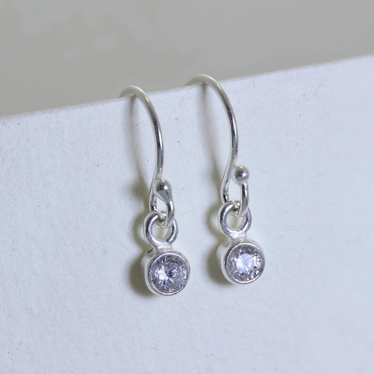 Prix habituelBoucles d'oreilles pendantes en argent sterling avec zircones cubiques transparents de 3 mm en forme de hameçon