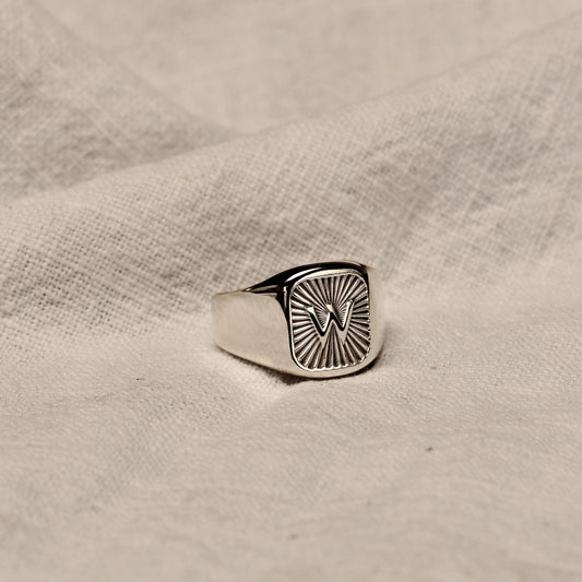Prix habituelPersonalised Sterling Silver Square Starburst Initial Signet Ring Size M - Z+1