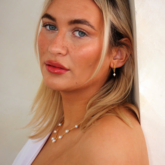 Prix habituelBoucles d'oreilles créoles en argent sterling plaqué or avec perles