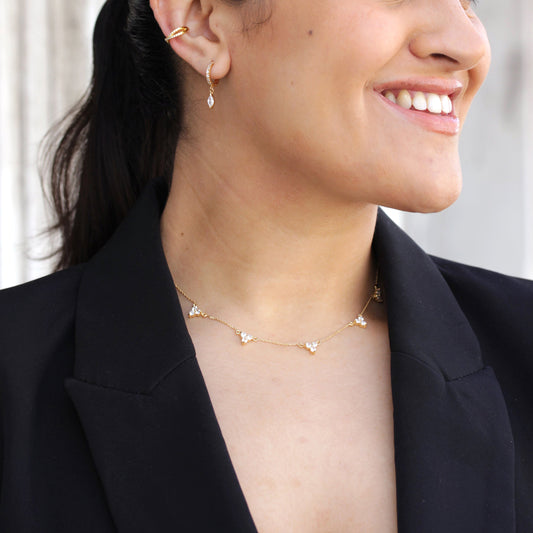 Prix habituelCollier en argent sterling plaqué or avec plusieurs trios de zircones cubiques