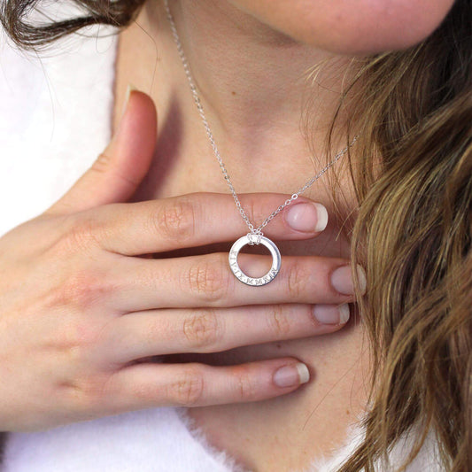Prix habituelCollier cercle personnalisé en argent sterling avec nom de famille