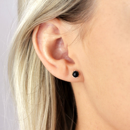 Prix habituelBoucles d'oreilles à tige en or 9 carats et onyx, pierres précieuses rondes de 6 mm