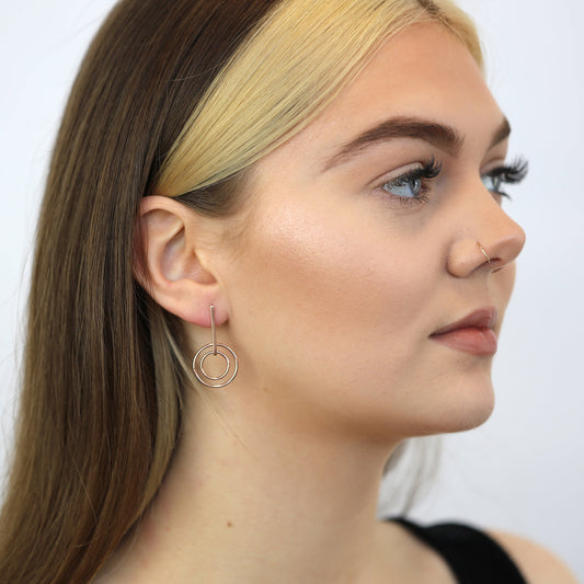 Prix habituelBoucles d'oreilles pendantes en argent sterling plaqué or rose avec barre et cercles