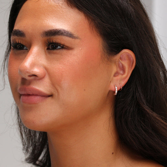 Prix habituelBoucles d'oreilles créoles en argent sterling plaqué or rose avec zircones cubiques de 14 mm