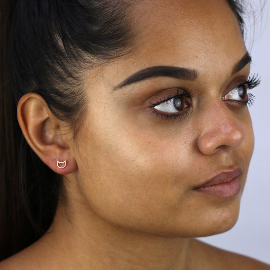Prix habituelBoucles d'oreilles à tige en argent sterling plaqué or rose avec contour de tête de chat