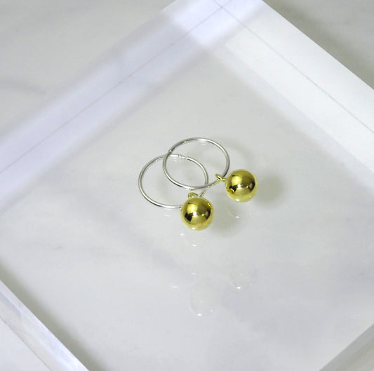 Prix habituelBoucles d'oreilles créoles en argent sterling plaqué or avec breloque boule de 12 mm