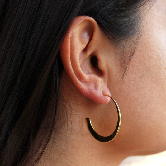 Prix habituelBoucles d'oreilles créoles ouvertes plates et coniques en argent sterling plaqué or