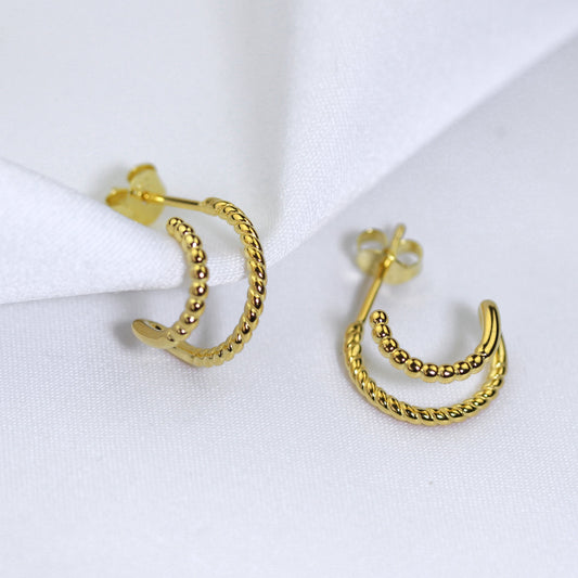 Prix habituelBoucles d'oreilles créoles ouvertes à double torsion en argent sterling plaqué or de 14 mm