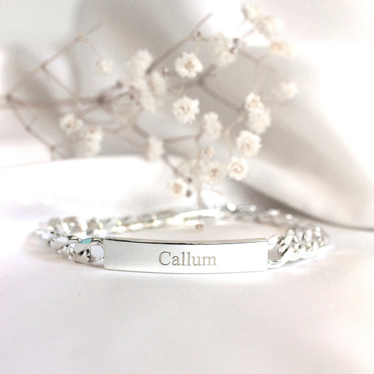 Prix habituelBracelet d'identification gravable en argent sterling de 20 cm avec bordure épaisse