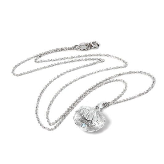 Prix habituelCollier en argent sterling avec pierre de naissance en forme de coquille d'huître et cristal CZ bleu zircon