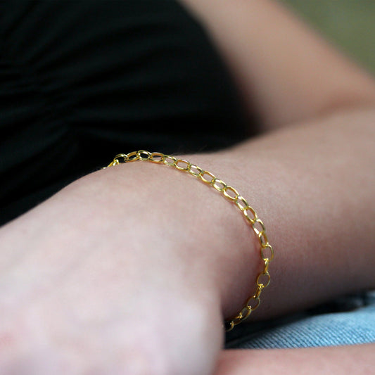 Prix habituelBracelet à maillons plats en argent sterling plaqué or de 5 mm, 19 cm
