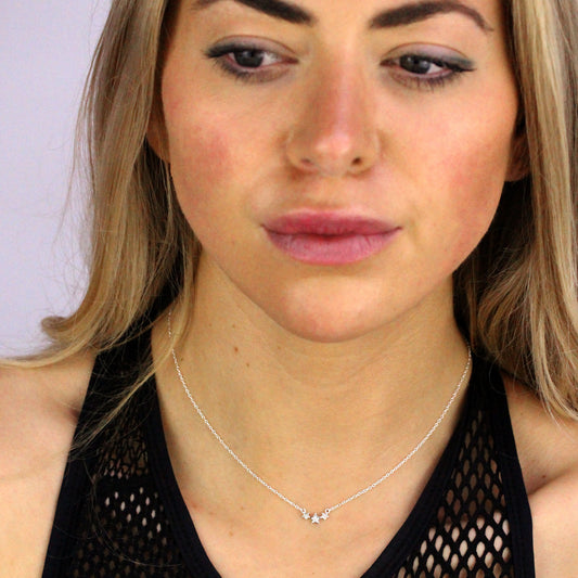 Collier triple étoile en argent sterling et cristal CZ de 40 cm