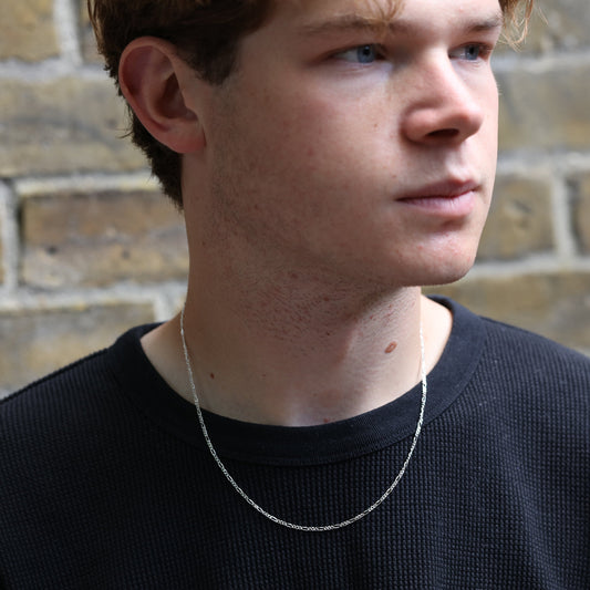 Prix habituelChaîne Figaro en argent sterling taille diamant de 14 à 24 pouces