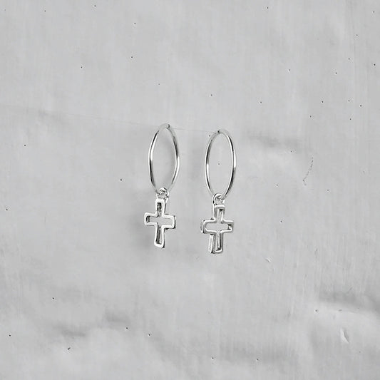 Prix habituelBoucles d'oreilles créoles en argent sterling avec breloques en forme de croix de 12 mm