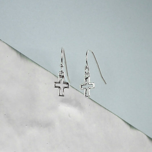 Petites boucles d'oreilles à tige en argent sterling avec croix