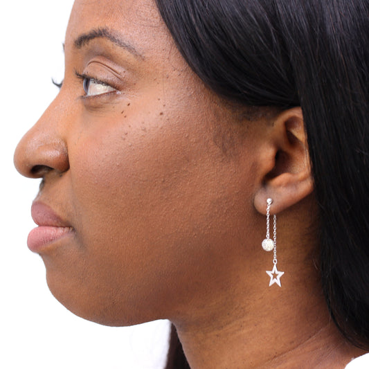 Prix habituelBoucles d'oreilles pendantes en argent sterling avec boule givrée double face et étoile découpée