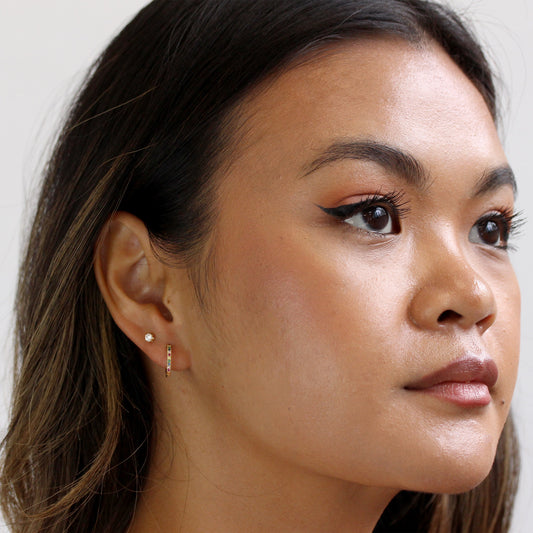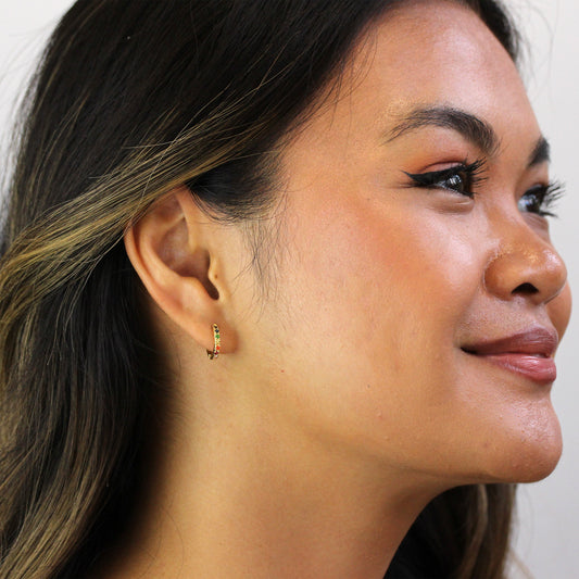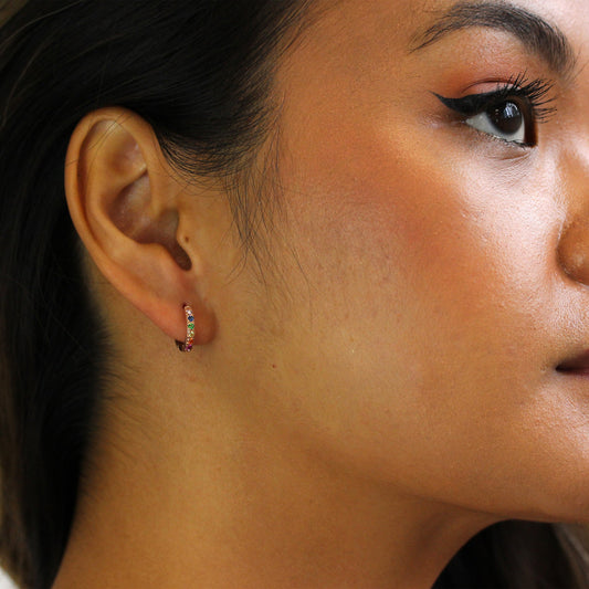 Prix habituelPiercings hélix Huggie en argent sterling plaqué or et zircones cubiques arc-en-ciel