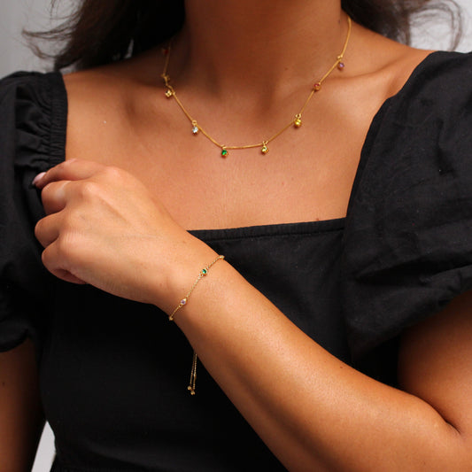 Prix habituelBracelet réglable en argent sterling plaqué or avec plusieurs zircones cubiques arc-en-ciel