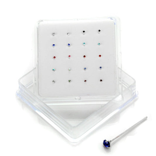 Prix habituelLot de 10 piercings de nez en argent sterling avec oxyde de zirconium multicolore, calibre 22, à extrémité sphérique