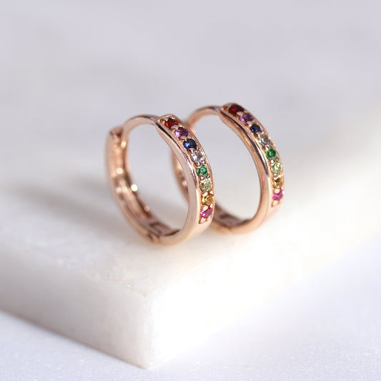 Prix habituelPiercings hélix Huggie en argent sterling plaqué or rose et zircones cubiques arc-en-ciel