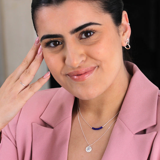 Prix habituelCollier réglable en argent sterling avec perles de saphir CZ de 40 cm