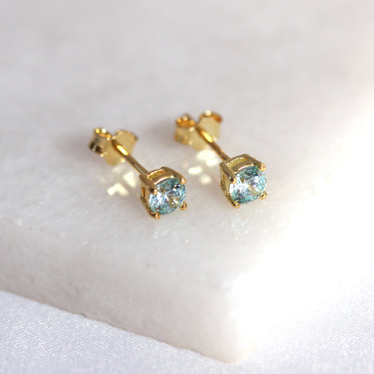 Prix habituelBoucles d'oreilles à tige en argent sterling plaqué or avec aigue-marine et zircone cubique de 4 mm