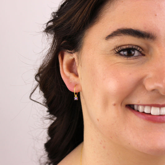 Prix habituelBoucles d'oreilles créoles en argent sterling plaqué or avec améthyste et zircone cubique de 12 mm