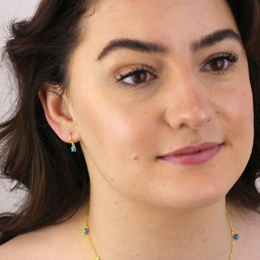 Prix habituelBoucles d'oreilles pendantes septembre en argent sterling plaqué or et saphir CZ