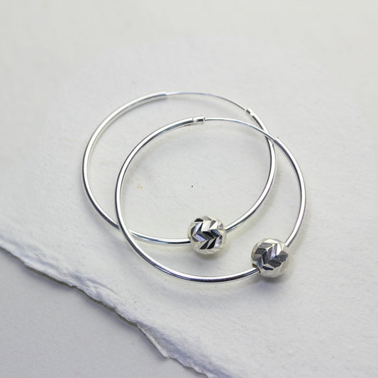 Prix habituelBoucles d'oreilles créoles en argent sterling de 22 mm avec perles boules taillées en chevron