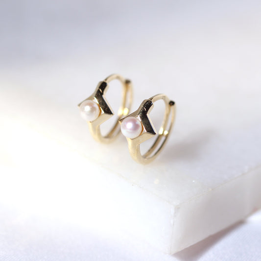 Prix habituelBoucles d'oreilles créoles en or 9 carats avec perle de 3 mm et diamants, 12 mm