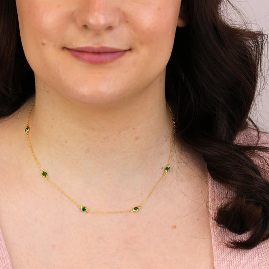 Collier en argent sterling plaqué or avec émeraude et zircone cubique, pierre de naissance du mois de mai