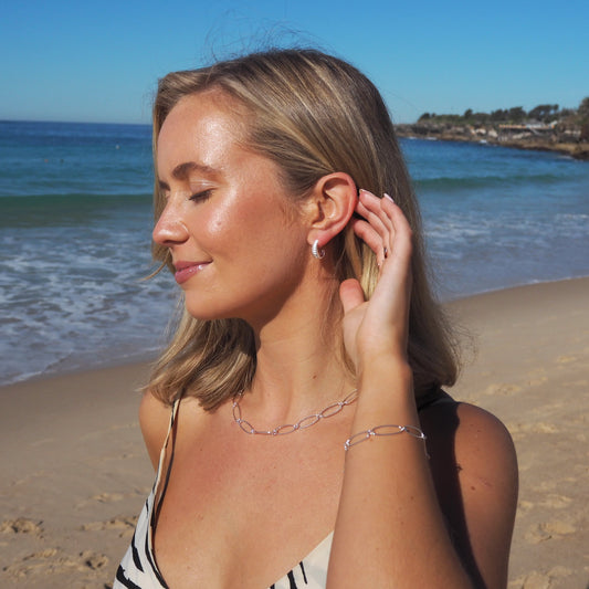 Prix habituelBoucles d'oreilles créoles ouvertes en bambou et argent sterling