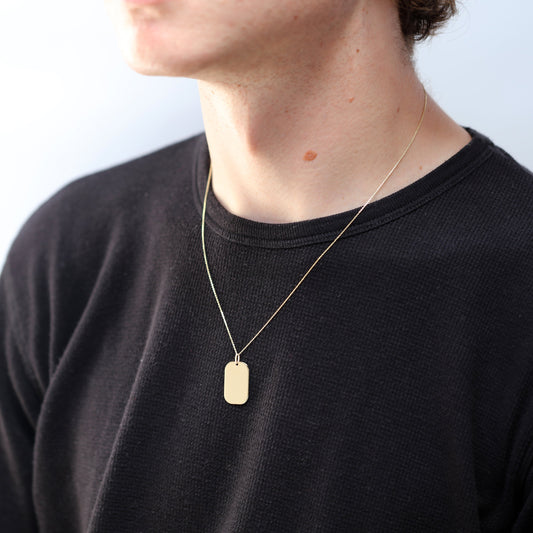 Prix habituelGrand collier en or jaune 9 carats avec plaque d'identité gravée, 40 à 50 cm