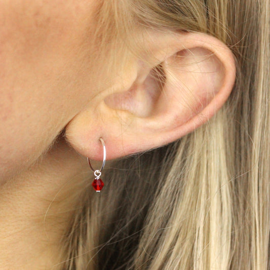 Prix habituelBoucles d'oreilles créoles en argent sterling avec perles de cristal CZ rouges de 12 mm