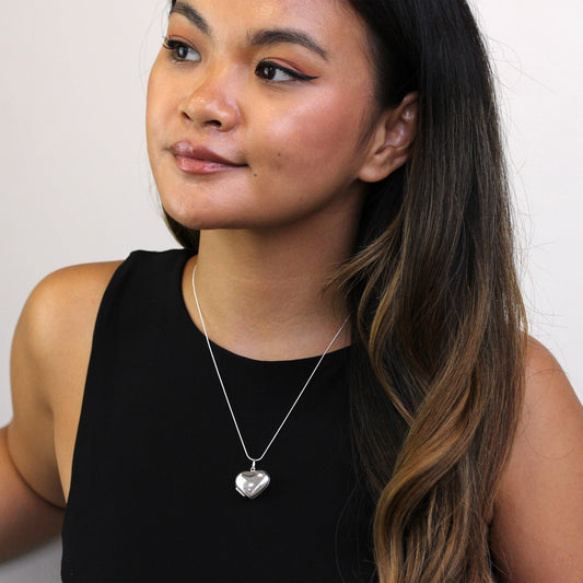 Prix habituelGrand collier pendentif médaillon en argent sterling en forme de cœur gonflé de 40 à 55 cm