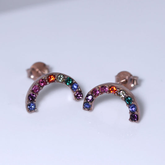 Prix habituelBoucles d'oreilles à tige arc-en-ciel en argent sterling plaqué or rose et zircones cubiques