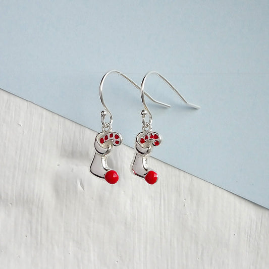 Prix habituelBoucles d'oreilles en argent sterling avec breloques en forme de chaussette et de canne à sucre