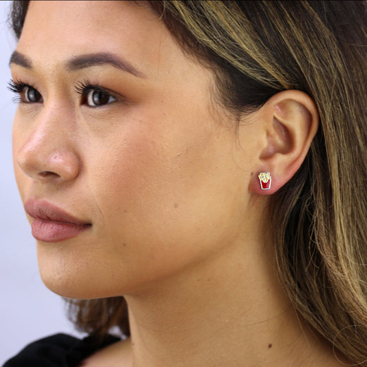 Boucles d'oreilles à tige en argent sterling et émail en forme de frites