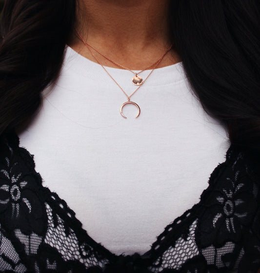 Prix habituelCollier avec pendentif croissant de lune en argent sterling plaqué or rose et double couche