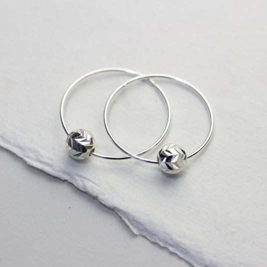 Prix habituelBoucles d'oreilles créoles en argent sterling de 18 mm avec perles boules taillées en chevron