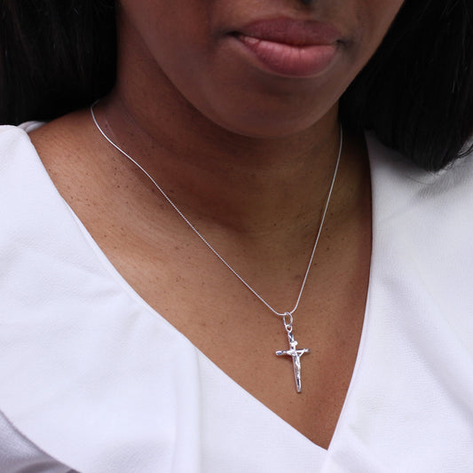 Prix habituelGrand collier avec pendentif en forme de croix crucifix en argent sterling de 40 à 55 cm